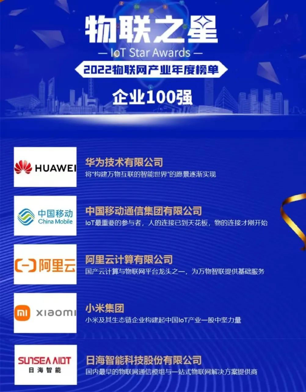 实力加冕!|yabo鸭脖公司智能荣登2022年度“物联之星”中国物联网企业100强